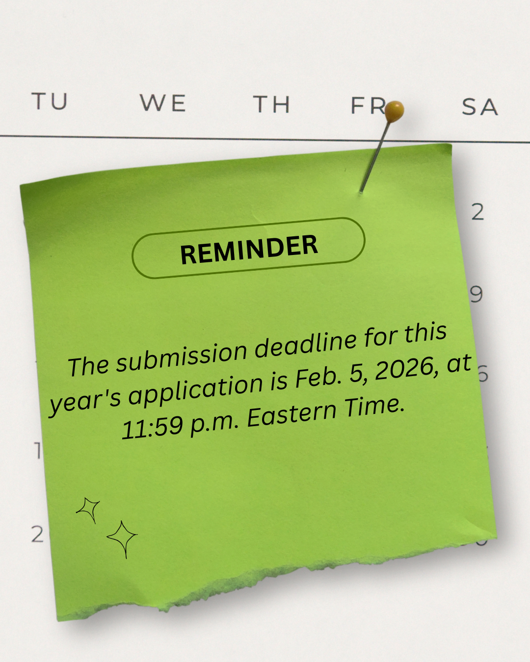 Reminder: Application Deadline – February 5, 2026, at 11:59 PM Eastern Time